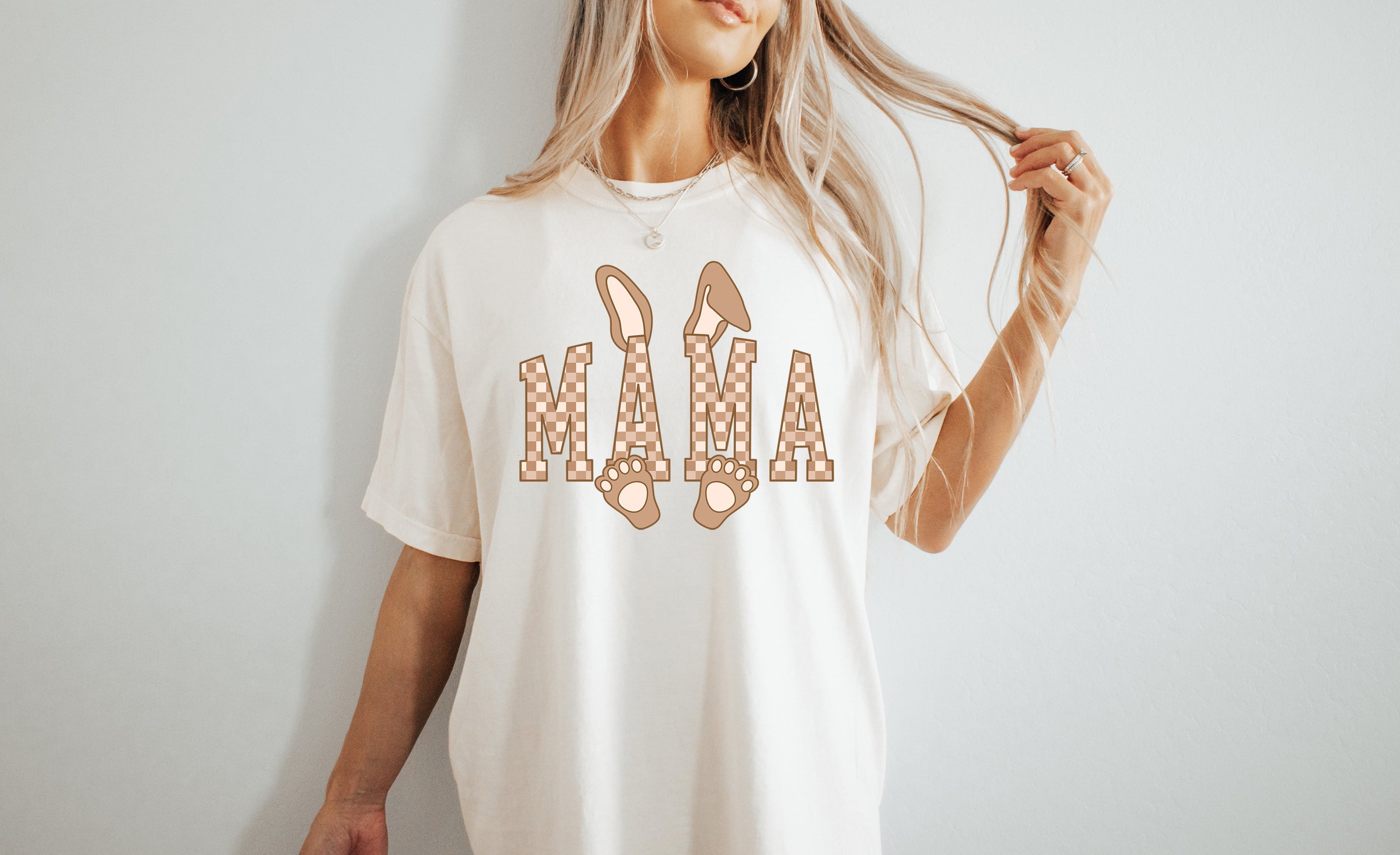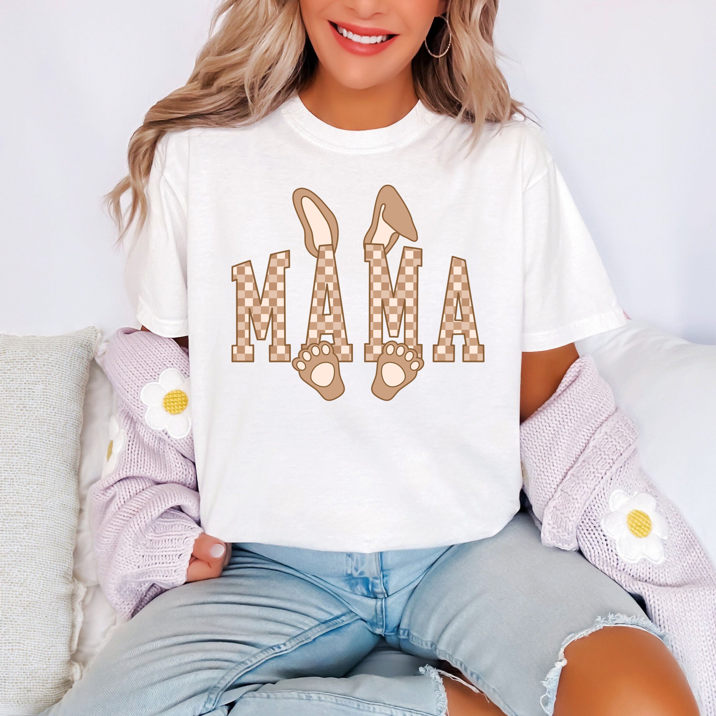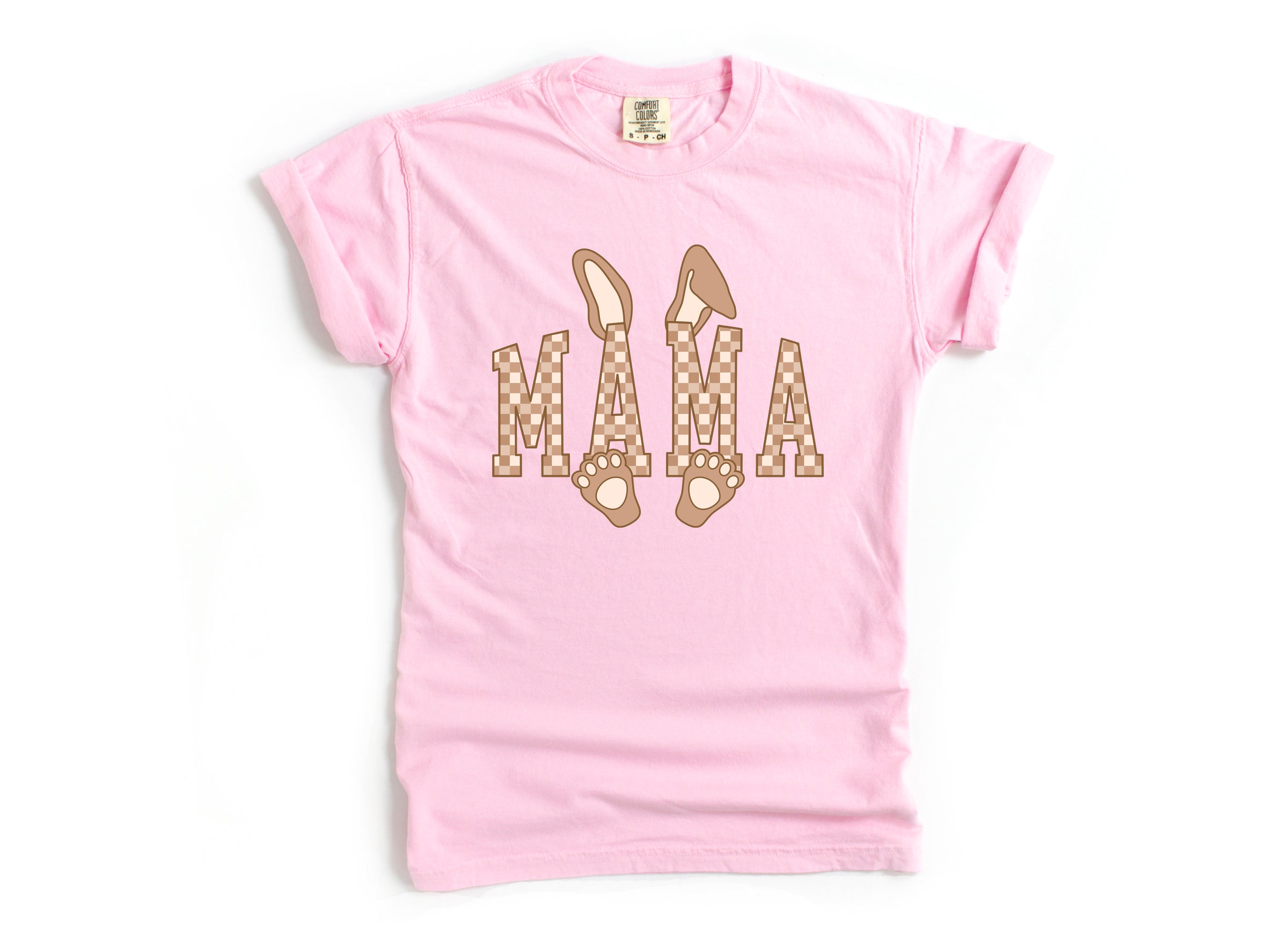 Mama Checkered Bunny - Comfort Colors Unisex Adult Tee