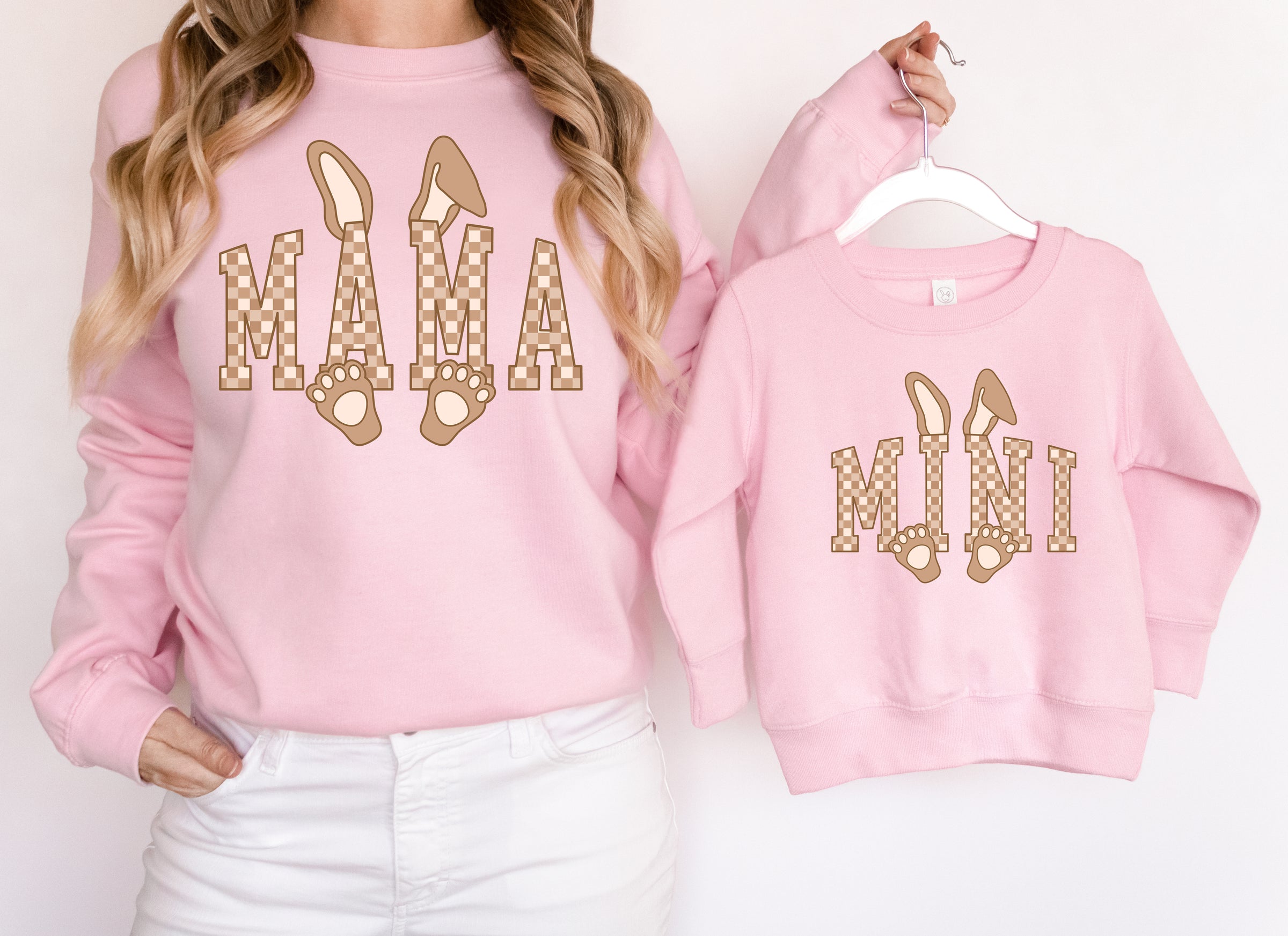 Mini Checkered Bunny - Kids Fleece Sweatshirt