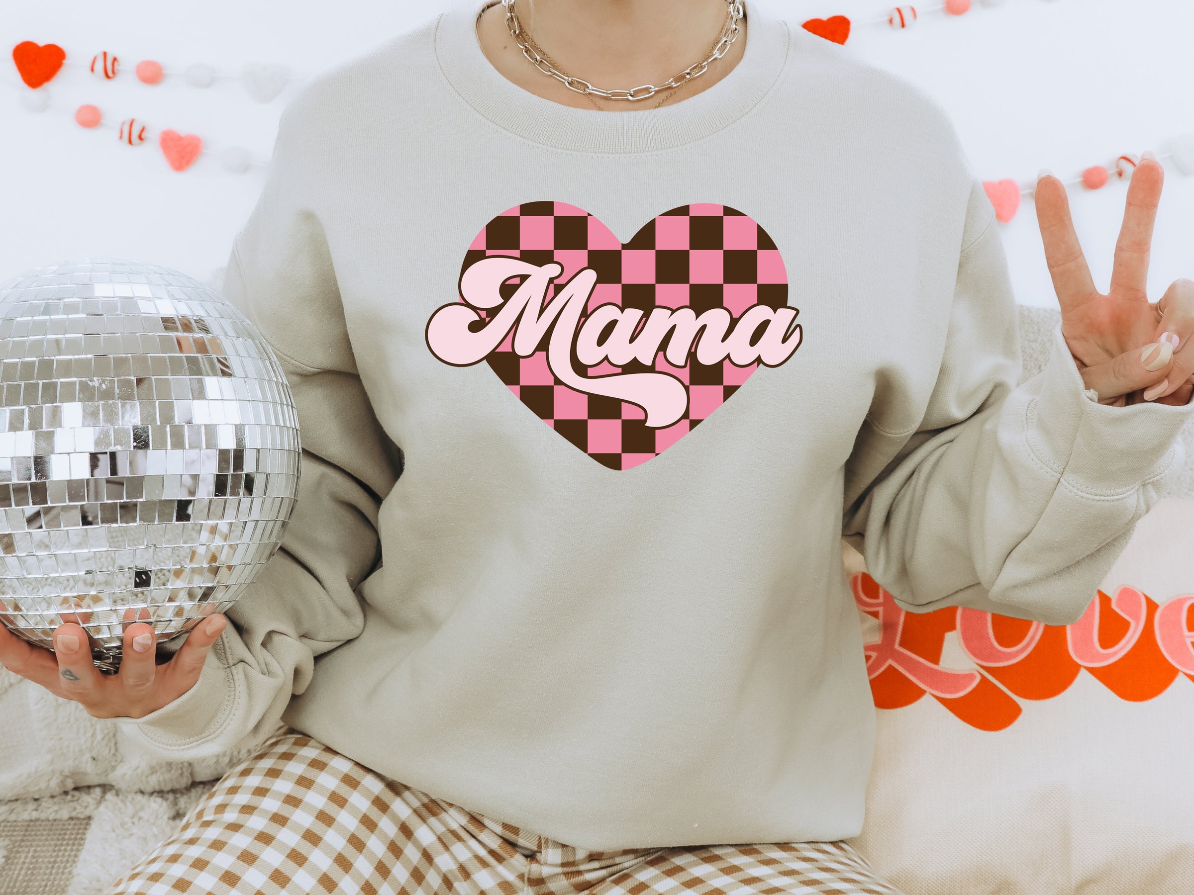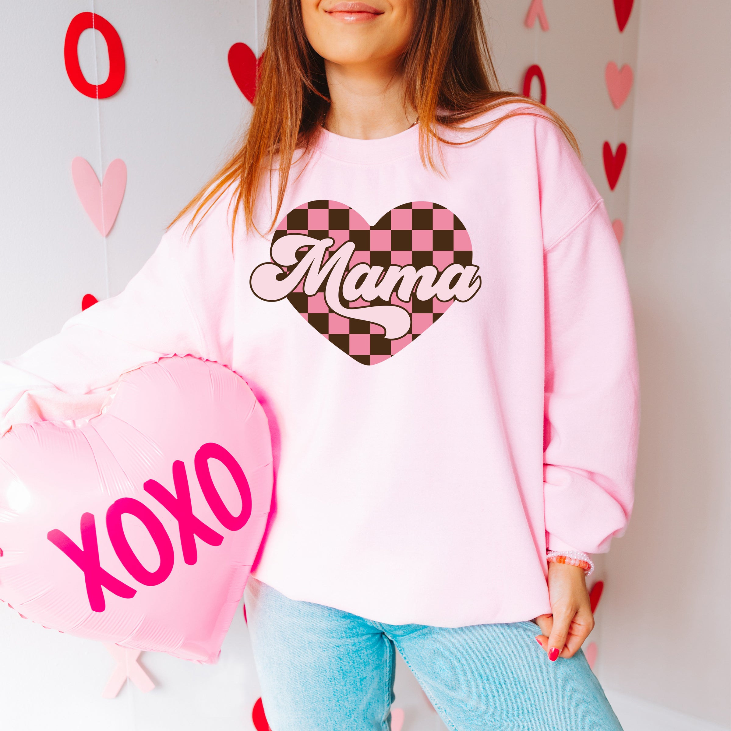 Checkered Mama Heart - Unisex Adult Fleece Sweatshirt