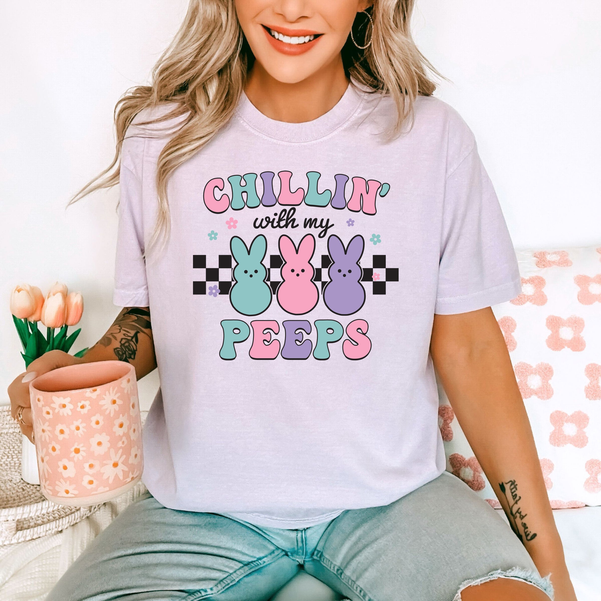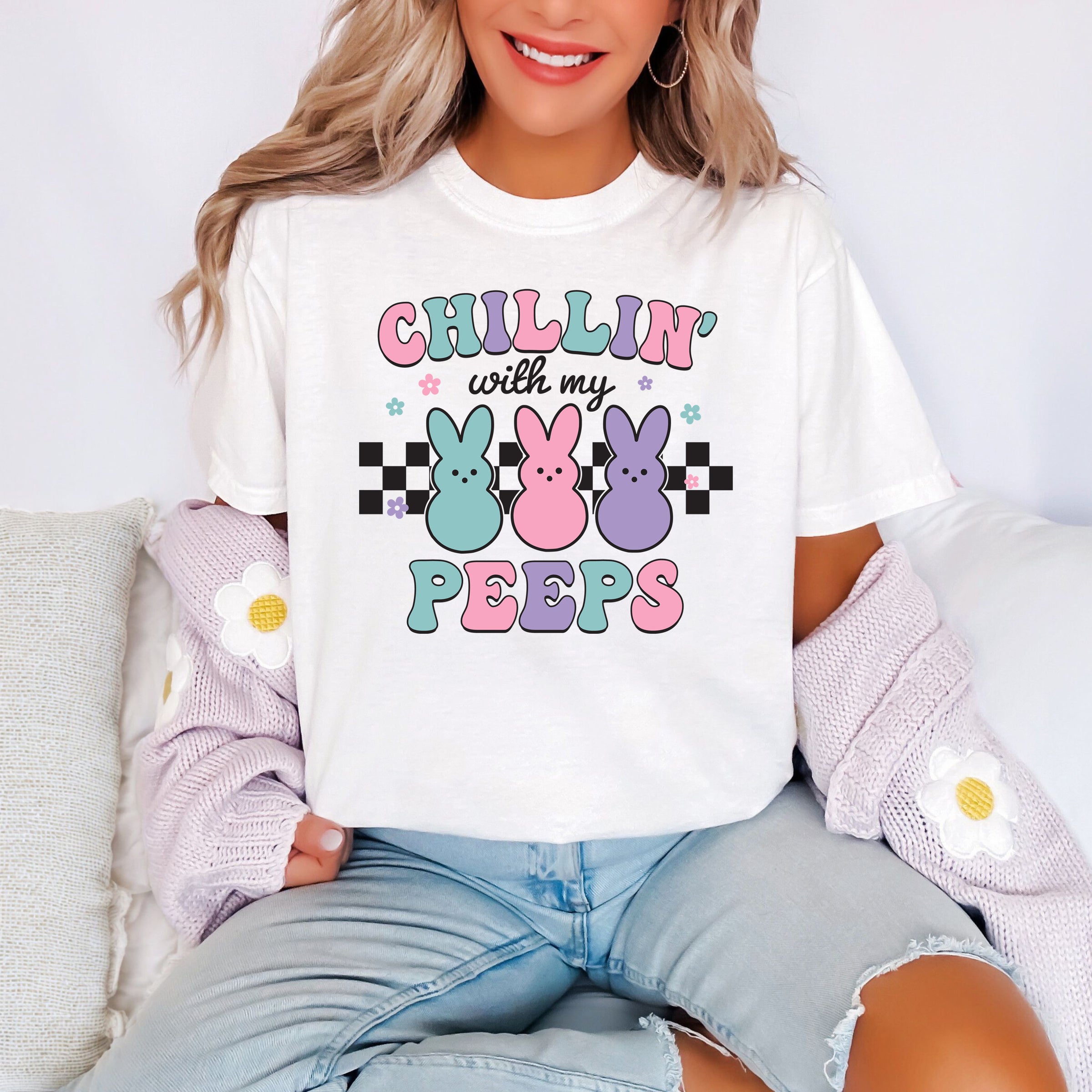 Chillin with my Peeps - Comfort Colors Unisex Adult Tee | Pastel