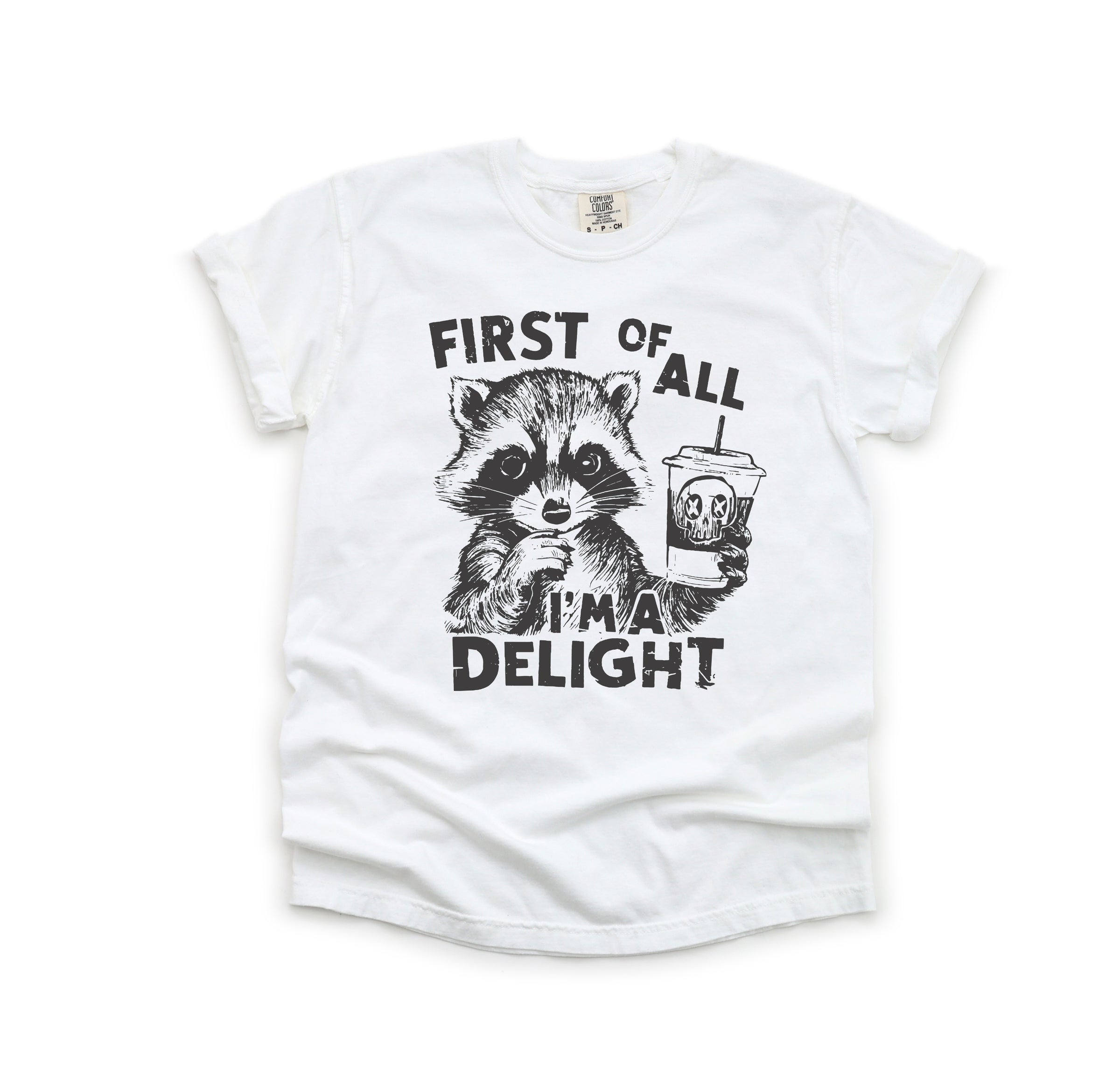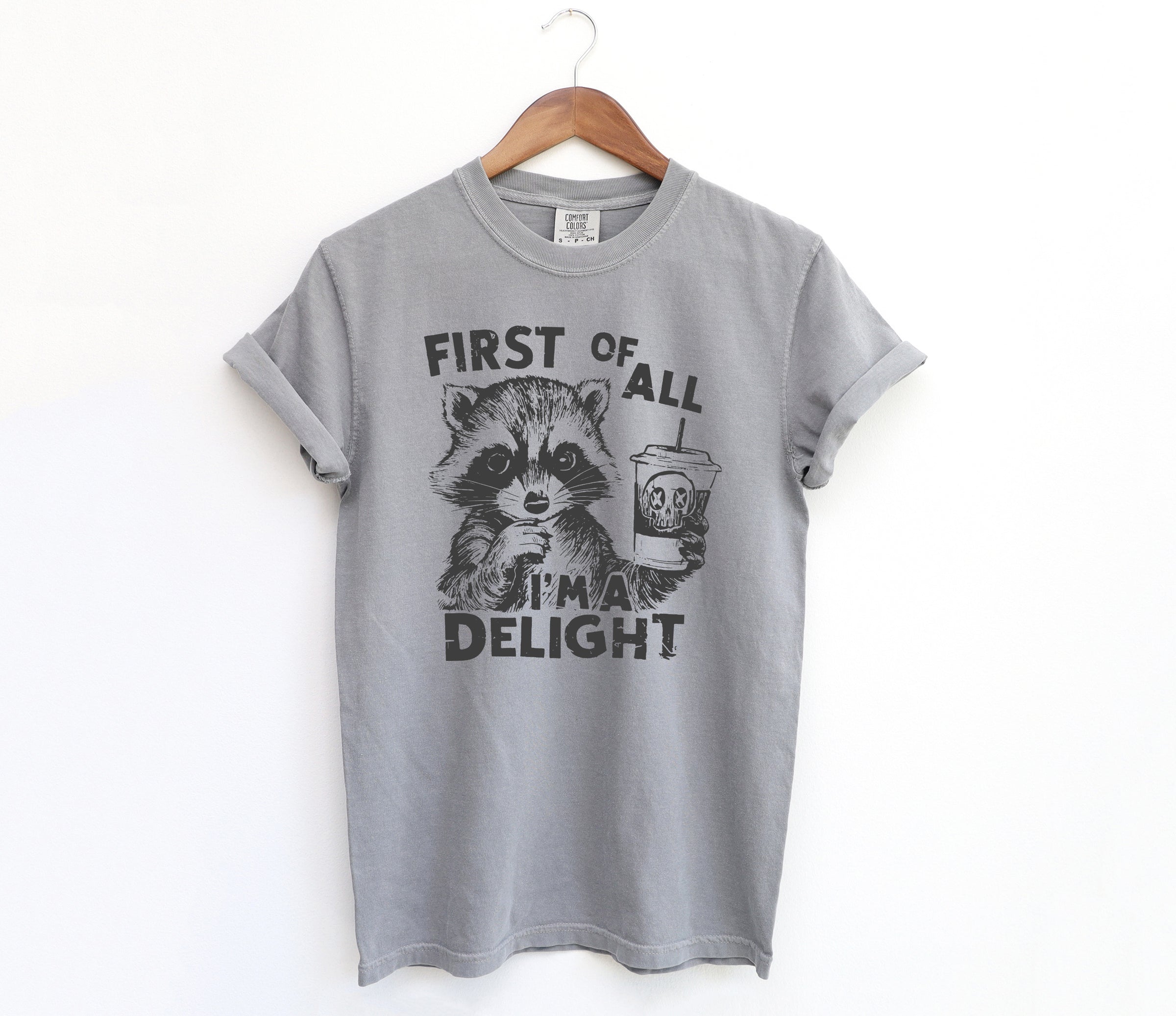 First of All, I'm a Delight - Comfort Colors Adult Tee | Dark Grey ink