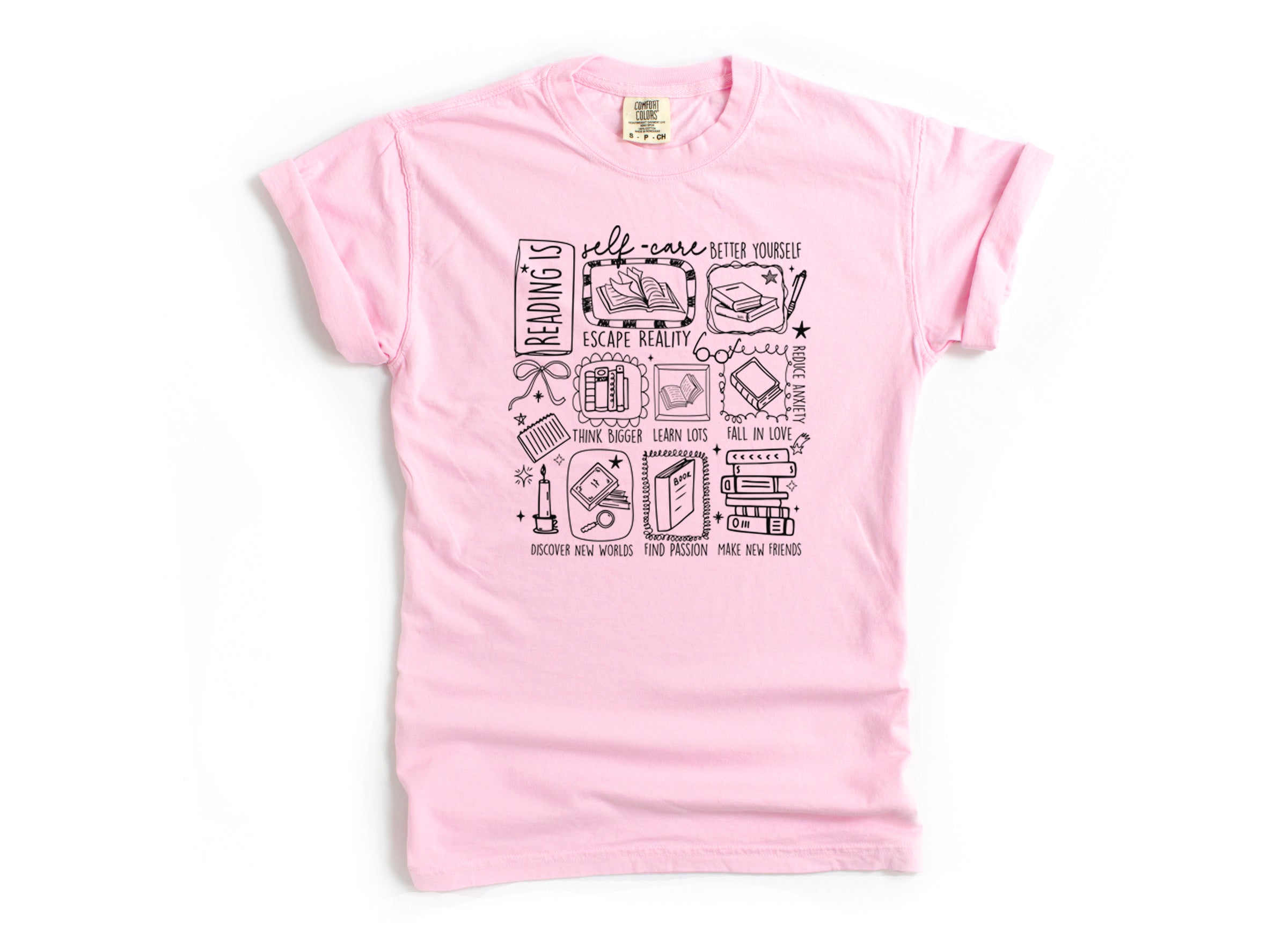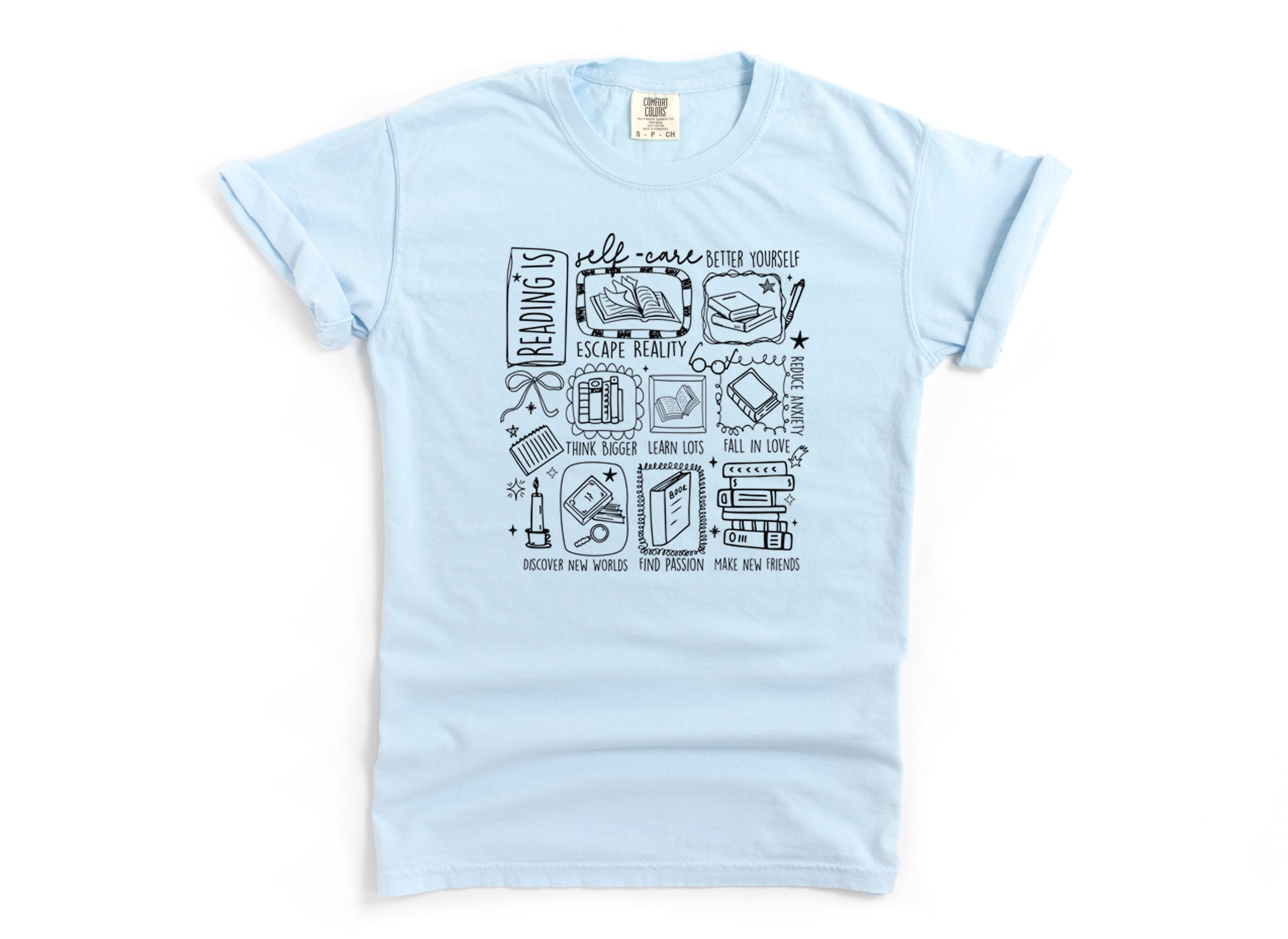Reading is Self-Care - Comfort Colors Adult Tee | Black ink